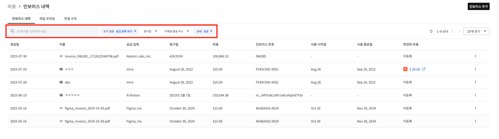 🔎 請求書および承認履歴のフィルター機能 – 必要なコスト情報だけを表示!