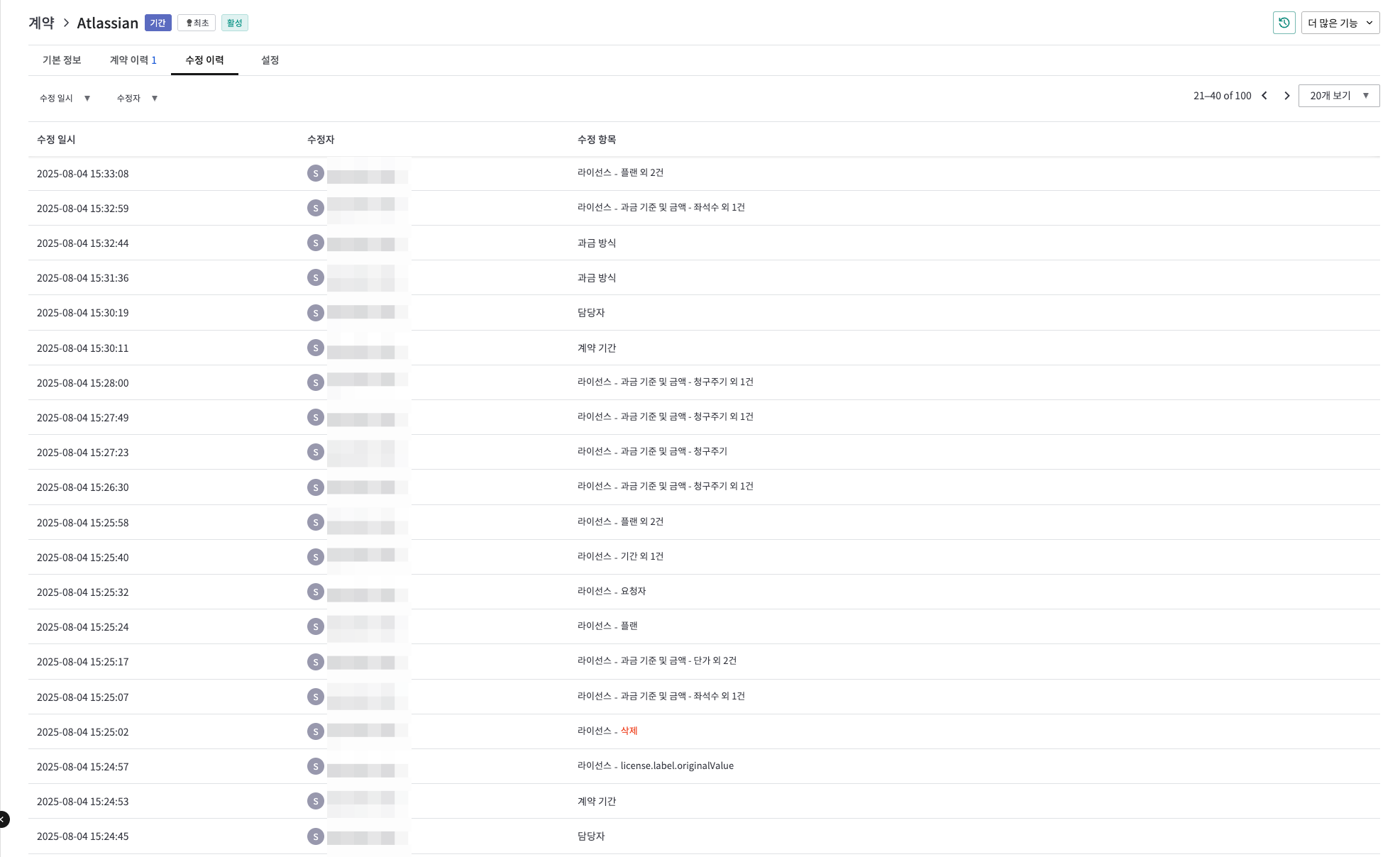 ライセンスの追加購入や担当者変更など、あらゆる修正内容が時系列で記録され、これまでのように複数のドキュメントを比較する必要がなくなります。