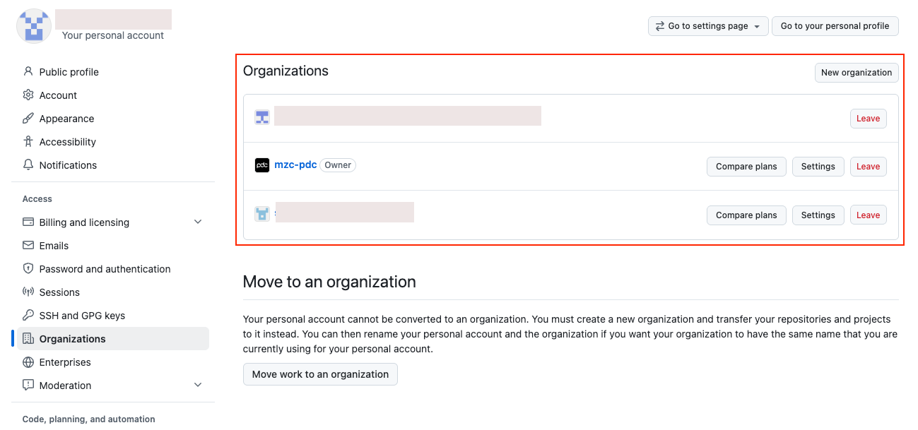 2. GitHub 프로필 이미지를 클릭하면 노출되는 메뉴에서 [Your Organizations]를 클릭합니다.