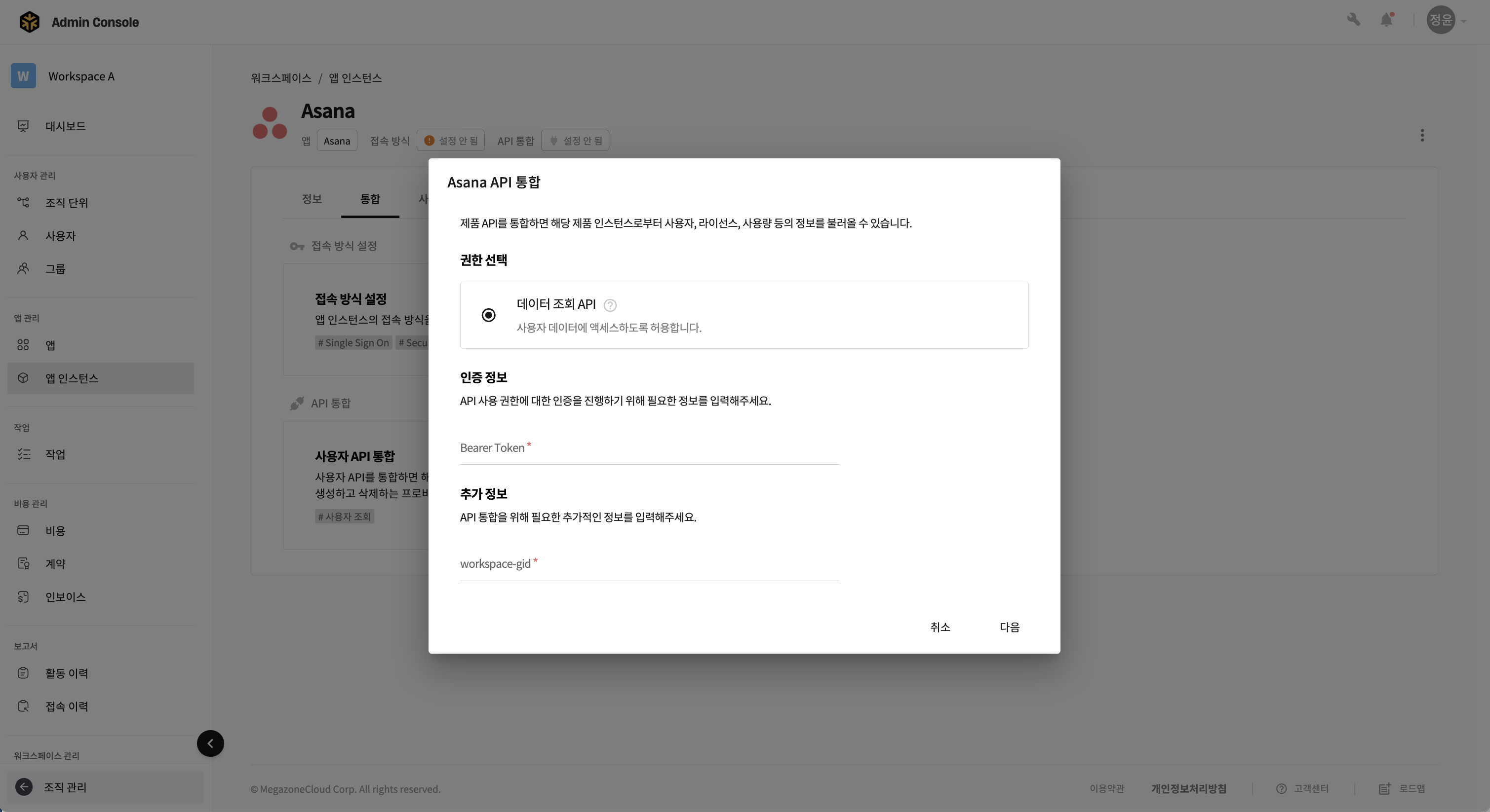 - Megazone PoPs 워크스페이스 관리 콘솔에 관리자 계정으로 로그인합니다.