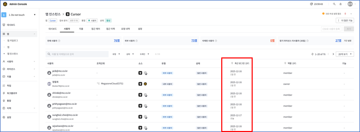 (Cursor 마지막 활동 일시)