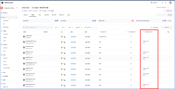 (Slack 마지막 활동 일시)